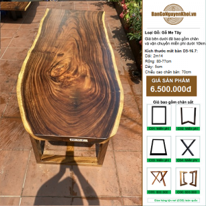 • Bàn Gỗ Nguyên Tấm Me Tây 2m14
