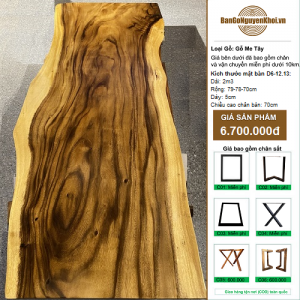• Bàn Gỗ Nguyên Tấm Gỗ Me Tây Kiểu Tự Nhiên 1m79