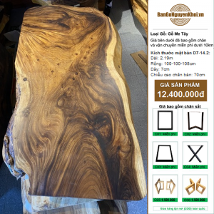 Bàn Gỗ Tự Nhiên Me Tây Dài 2m19 Rộng 103cm Dày 7cm