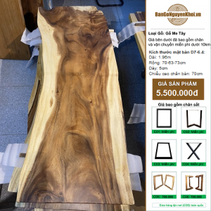 Bàn Gỗ Tự Nhiên Me Tây Dài 1m96 Rộng 69cm Dày 5cm