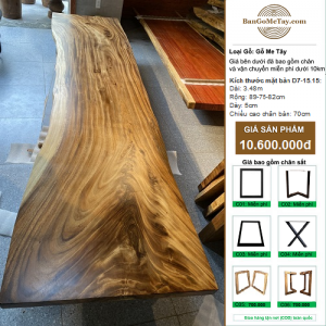 Bàn Gỗ Nguyên Tấm Gỗ Me Tây Kiểu Tự Nhiên 3m78