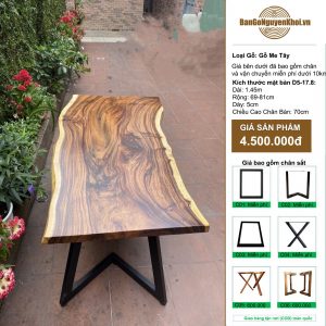 Bàn Gỗ Nguyên Khối Me Tây 1m45