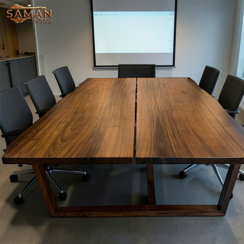 - Gỗ me tây tự nhiên nguyên tấm, nổi bật với vân gỗ uyển chuyển, màu nâu trầm sang trọng.