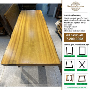 Bàn gỗ Gõ Vàng nguyên tấm, phù hợp làm bàn ăn, bàn làm việc…