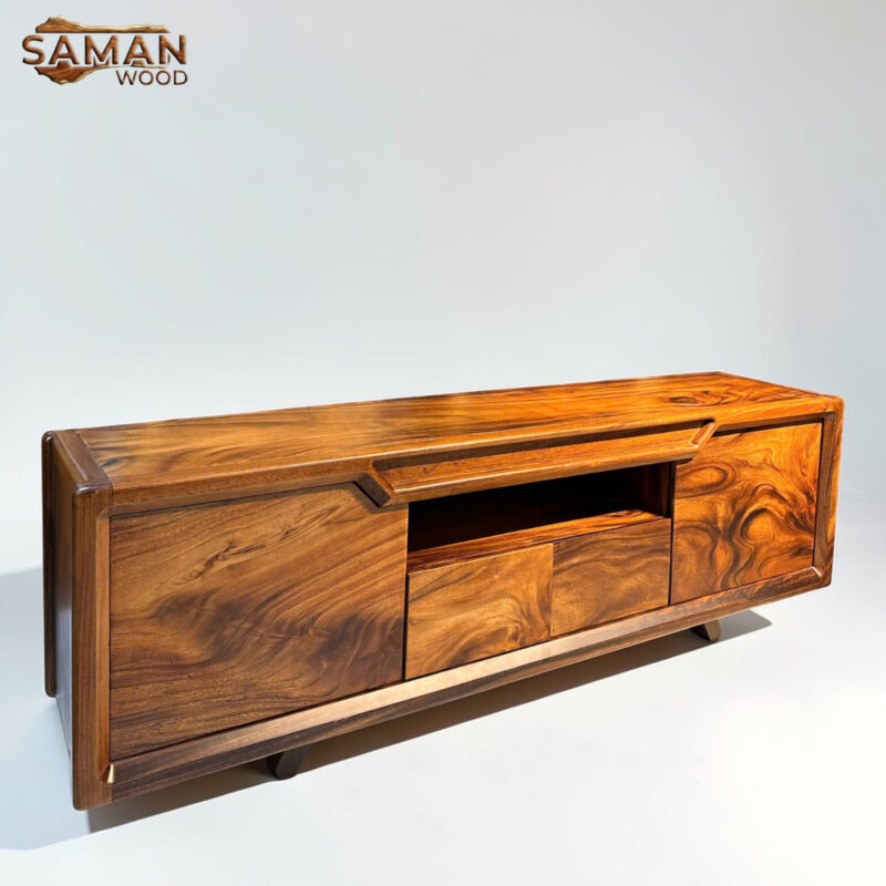 Kệ tủ tivi từ gỗ Me Tây đang là xu hướng nội thất rất được ưa chuộng bởi vẻ đẹp tự nhiên, mộc mạc nhưng không kém phần sang trọng.