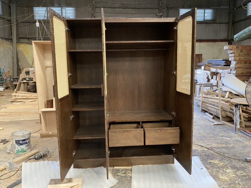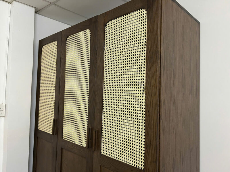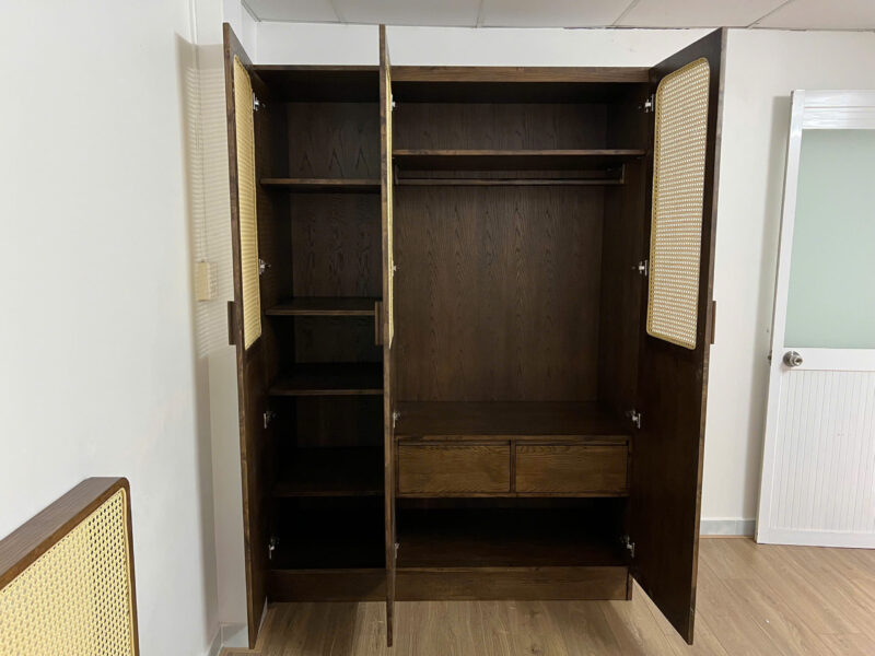 Tủ quần áo gỗ cao su kết hợp cánh tủ mây mắt cáo